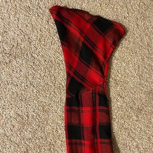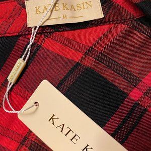 Buffalo Plaid Jacket in black and red. Brand new with tags. I believe the sleeves are called " Bell Sleeves" (see photo). Made of 100% Rayon.
