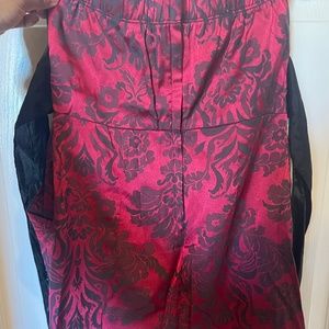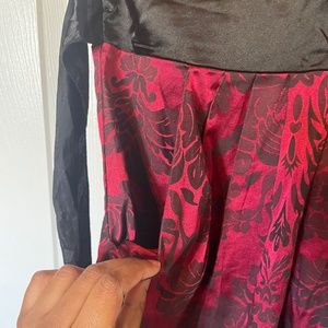 Size 1 red and black floral strapless dress with pockets. Flower detailing on the front. Worn once. Size is in Juniors sizing.