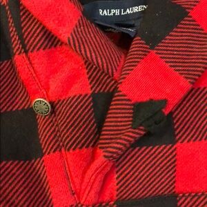 Cozy Ralph Lauren black and red tunic. Horse logo. 3 levels of ruffle. Very soft inside. Adorable snowflake button by neck.
