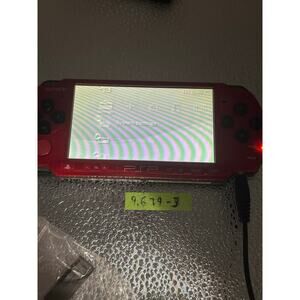 Red and black psp 3000 w/charger adapter, new battery & has glass screen lens