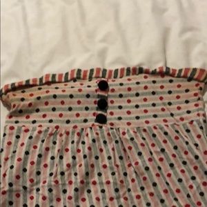 Super cute red and black vintage inspired shirt. Please note the elastic is twisted and “crunchy”. Otherwise in good pre-owned condition. Size tag is missing, but likely a Medium.