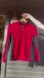 Color-block red part zip-collar sweater with black side panels. Brand is Rafaella Petites.