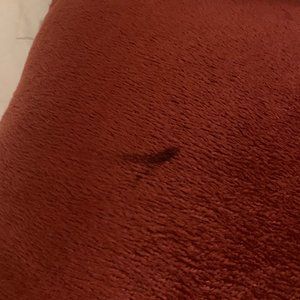 The sequins on it are red and blue and the back is a redish color. It has a small mark from something on the back but, it's and on the back so I don't think it's too big of a problem. There was a small hole on one of the sides but I've already stitched it up so I don't think that's an issue too. I'm just getting rid of it because it didn't really match the colors of my room. If you're interested, please let me know! I honestly just want to get rid of it so feel free to make an offer!