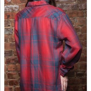 JACHS Girlfriend Oversized bias pocket red plaid shirt. 100% Rayon Imported G15C-231-4D0