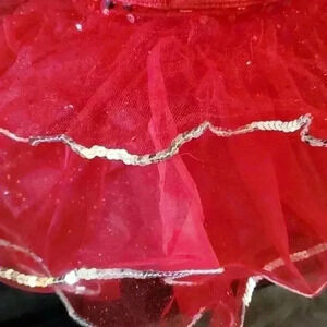one shoulder tank, cami strap on other side, sequin bodice, 4 layer skirt with 2 layer confetti tulle, 2 layer tricot.