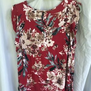 Red and taupe floral ruffle sleeve Marybelle top💋