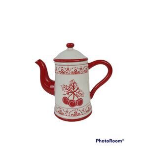 Red and white Cherry teapot Young's Heartfelt Creation 5 x 8