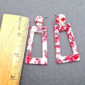 Red and white Style Crush Geometric Resin Abstract Earrings