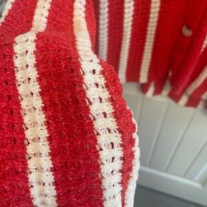 Red- white textured button cardigan with collar. NEVER WORN!!! Great QUALITY!!! Size L from urban nomad boutique
