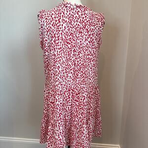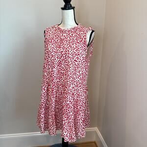leopard print, sleeveless dress, red and white, animal pattern, summer style, flowy, casual dress, statement print, lightweight fabric, bold pattern