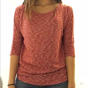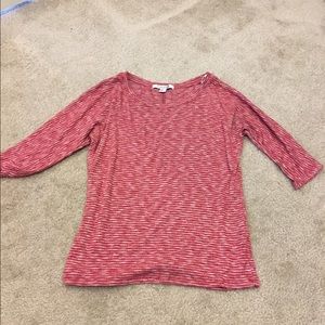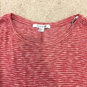 Quarter sleeve top from Forever 21. Red and white stripe pattern. Looks almost like a dark pink. Very comfortable. Size medium but can fit a small.