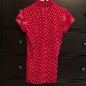 Red and White Polka Dot Semi Sheer Blouse - Size S