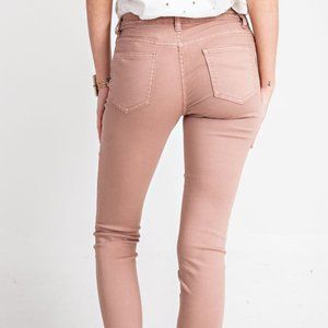 Great spring/summer color! Awesome fit with good stretch. These run on the smaller side, 27.5" inseam. 65% cotton, 33% rayon, 2% spandex.