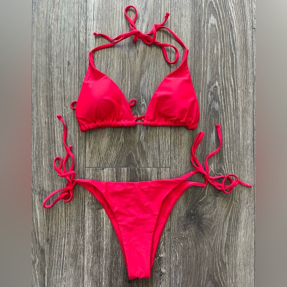Red side tie bikini. Simple and flattering buttery soft fabric