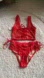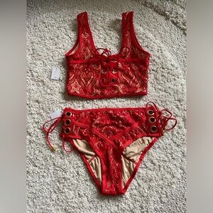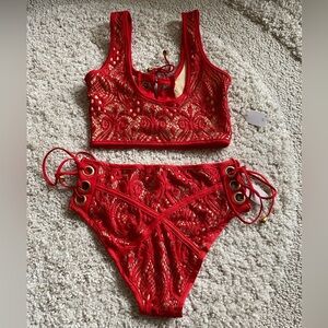 Red bikini lace design high rise high waist small bottom medium top NWT