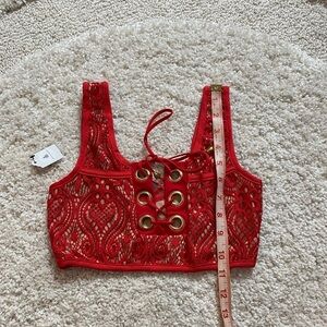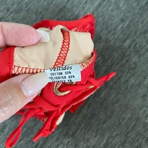 Measurements are included in the photos. The sides of the bottom and the middle part of the top are adjustable with the strings