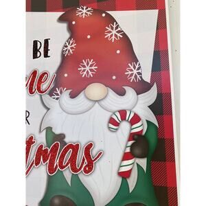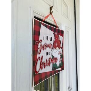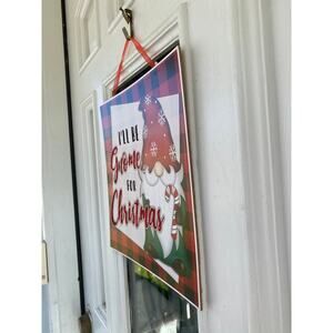 Brand new christmas sign with tags. I’lol Be Gnome for Christmas sign features a black and red plaid border and a cute little Christmas Gnome holding a candy cane. Embellished with glitter finish on the lettering.