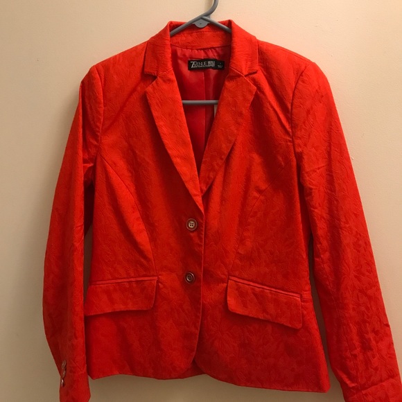 NWT red Blazer from NY&Co. it has a damask pattern in the red fabric. Size 2 but fits a little big in the chest.