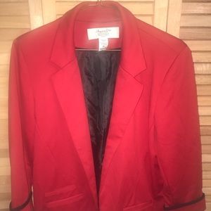 Red blazer with cuffed sleeves, no pockets