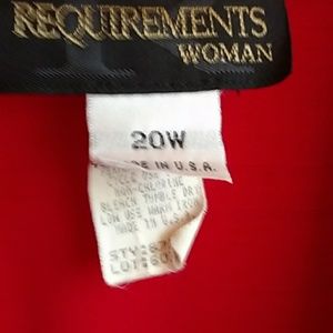 This is a bright red blazer with two deep pockets in the front. It has one decorative button for wearing closed or open