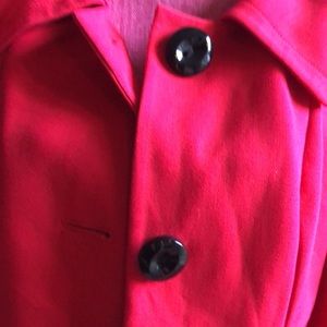 Red Blazer/large black buttons/ exaggerated Peter Pan collar