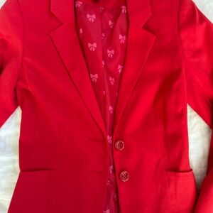 Cute red blazer! Great condition, smoke free home. I typically wear a size 0, for size reference on this item!