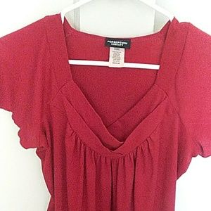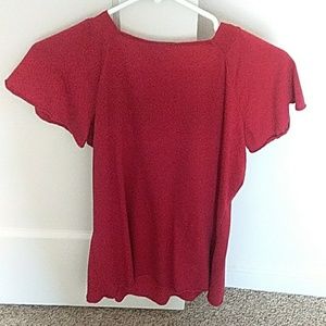 Red blouse. So flattering because of the neckline. Flowy throughout.