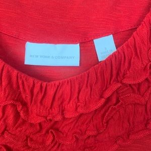NY&C bright red tank top with ruffle detail at the top. Size small