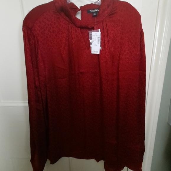 Red Roz & Ali blouse buttons near neck in back.