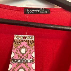 Pretty flowy red blouse. Can be dressed up or down. You can make the top shorter by pulling the string in the front. Never worn.