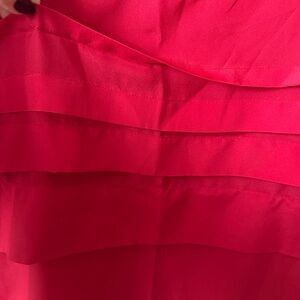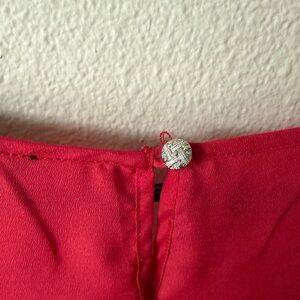 Red blouse with little detail.