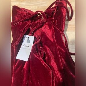Red bodysuit with Velcro closure. Brand new & never worn. Satin material feel