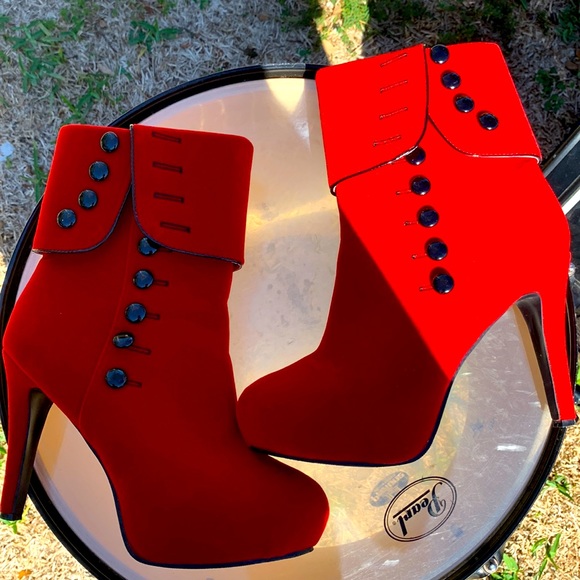 Red boots, crushed velvet, NWOT, never been worn