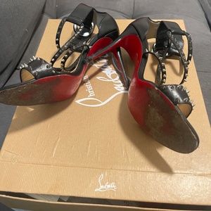 Worn. Repainting can be done and sealed at any good shoe repair . Spiked open toe .