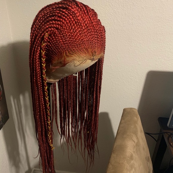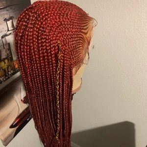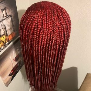 Pretty red braid wig. It has scalp braids in the front and individuals in the back. Wig is 26 in long. Wig was worn once for a fashion show but in great condition.