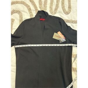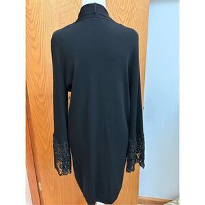 Lace bell sleeves. Open front cardigan in a rich black color.