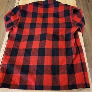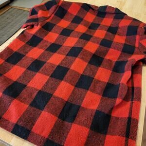 Red buffalo plaid wool felt Blazer blanket stitch Edge vintage pockets 23" p2p