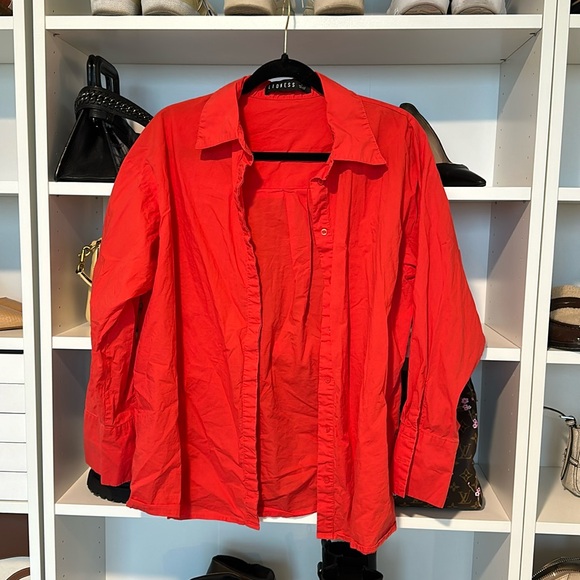 Red button down