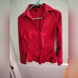 Dark red, button down work blouse, ruching along sides. Size xs.