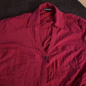 Loose fit pretty button down working girl top very wrinkled will look great once steam/iron