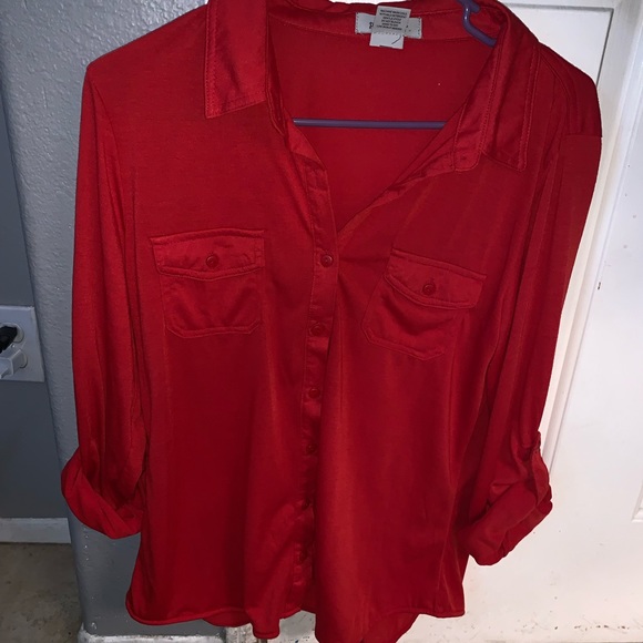 Red button down shirt