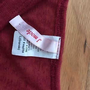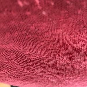 Sheer top. Rusty red. Has piling throughout but can be removed with fabric shaver.