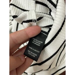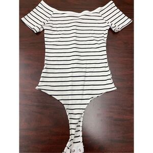 Lightly used black and white stripe bodysuit with snaps. Model photos from Buckle.