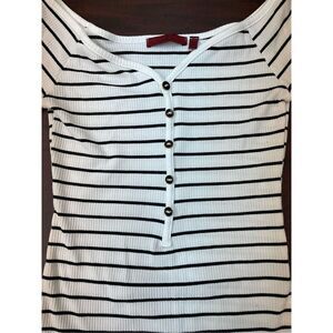 Red by BKE Black and White Stripe Faux Henley Bodysuit- Size X-Small