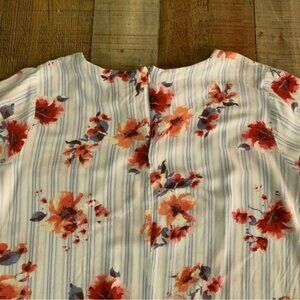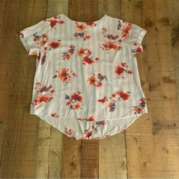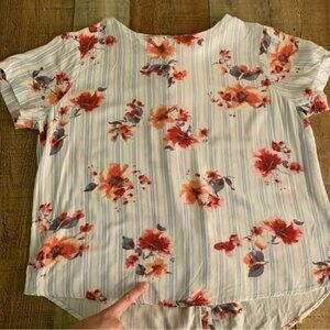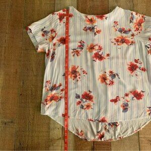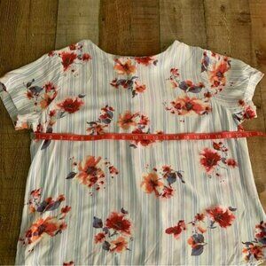 Red by BKE womens blue and white striped short sleeve top with Fred flowers -L