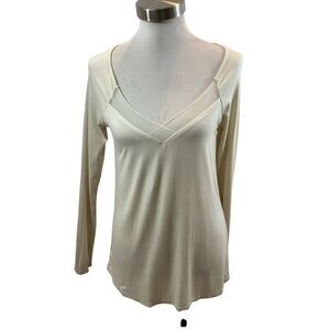 Red by BKE long Sleeved Lightweight Mesh Insert Ivory Blouse Medium