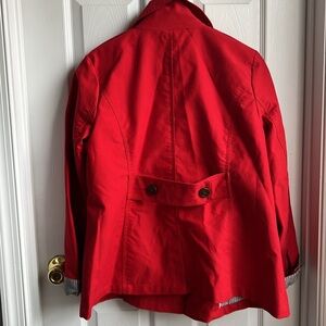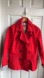 Red canvas Jacket by Lands End size medium w/blue & white stripes on liner cuffs