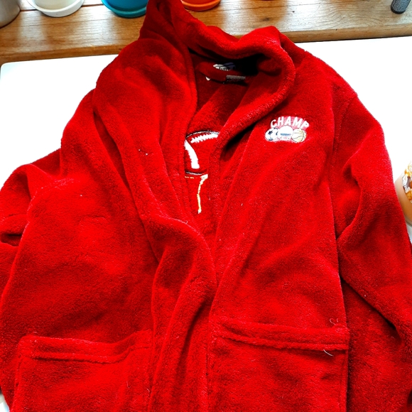 Red children's Sports bathrobe really soft still in good condition.