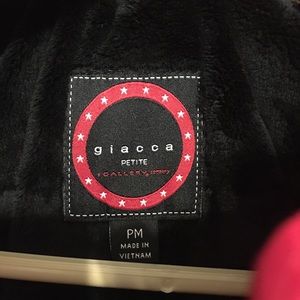 Red coat with detachable fur lined hood. Size Petite M. Has nice inside lining, zip and button closure. Inside hidden pocket that is nice and deep. True red! ❤️