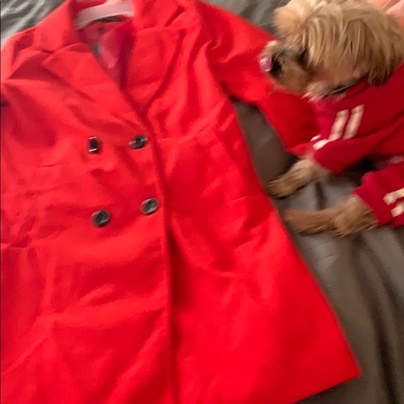 Double breasted red light coat with double breasted buttons and pockets